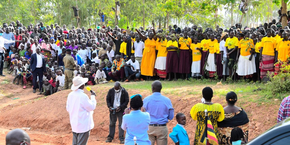President Museveni addresses an audience in West Nile on Tuesday. PHOTO/PPU